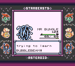 Some viewers might remember that I said I would reevaluate whether I should teach Mr. Bungle Bubblebeam after "a couple more levels". Some skeptics may have thought that I simply forgot about this, and that I'd be stuck with Water Gun on both Beasts all the way until I got Surf. However, my grand plans have all come to fruition now, as Mr. Bungle learned Bubblebeam by level up.