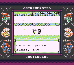 Rock Tunnel has led me to a surprising revelation: I don't think Duhzlugg is actually a Rock type. I assumed it was, since it looked like one and it was in Mt. Moon, but I think it might actually just be a pure Psychic type? Odd, but I guess it being a crystal almost makes sense for that? Bubblebeam did normal damage, Bite was super effective, and it learns Psywave as previously established. So that's my best guess at this juncture. Wild Mosstons also show up here, and one Hiker comments that they're "tough as hell"! Which I'm inclined to agree with, although luckily when they're wild they're easy to run from. As for new Starbies, the only wild creature we haven't seen yet looks to be a pre-evolved form of that coal guy we saw on the route earlier.