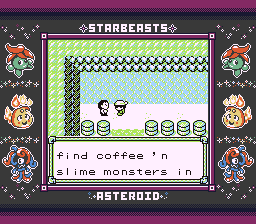 A new trainer is a Hiker that's fishing in the water just north of the Star Beast Center, who exists to give some hints about where to find some Beasts. He had a Cuppacaf on his team, and after the fight he meantions you can find "coffee n' slime monsters" in the water here by fishing with a Super Rod. This does confirm that the lady in Vermillion wasn't talking out of her ass when she mentioned pollution attracts slime monsters, so I'm glad there's still some good and helpful people in the world today.
