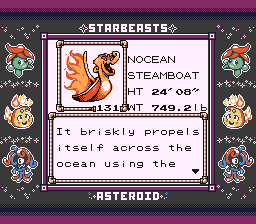 The NPC in this room that gives you the Lapras has dialogue that seems pretty much unchanged from the original game, bar saying Star Beast and the name "Nocean" instead of Lapras. But it still ferries you across the water. Indeed, it's a very Lapras-esque creature.