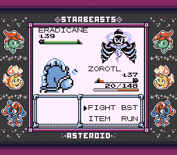 Next in is a Beast that looks to be the evolution of Speakeasy. That critter was pure Fighting, and I was willing to take the bet that it wasn't a Dark type, so I stayed in and hit it with a Psychic. It was not very effective, likely meaning this thing is Steel as well. This type bug really does make this Steel type problem even worse.