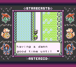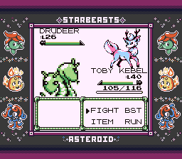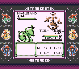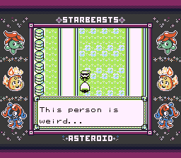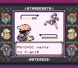 Couple other NPCs of note: There's two non Psychic gym members here, one Cue Ball who's really freaked out by the Channelers and initially thinks you're one of them, and one unrelated Gambler who mentions getting lucky at the Game Corner and has a team of 6 Beasts you can get as Game Corner prizes. (Rumpel, Xiaolong, Dragleam, Flewnicorn, Cheppi, and Robby.) That's a fun gimmick I like that. There's also a Psychic with the post-match dialogue "I was astral projecting into the ocean, and having a damn good time, until YOU came along!" Which is just a bit amusing.