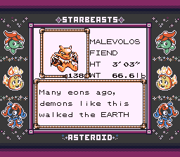"Before you is some sort of FIEND from an era long forgotten. It spots you and growls, taking up a fighting stance." It's a Malevolos! Maybe all those trainers that had them just got them from this cave? And maybe that Strength boulder is blocking the entrance to the other fossil Beast, and the boulder just gets placed there based on what fossil you choose, and it's a Strength boulder because that's an object and not a map tile so it can be dynamically moved around like this? That's what I'm going with. In any case, I caught the Malevolos without much trouble.