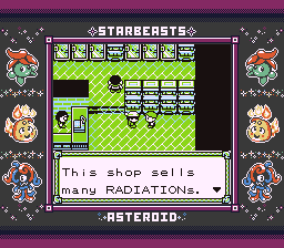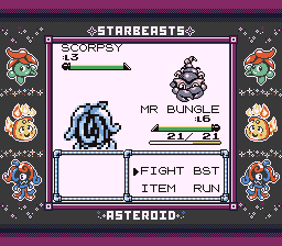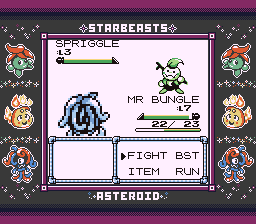 With Varik dealt with, you might say we're "On the Road to Viridian City". The guy who gives out the potion is here with the same role as always, but he oddly says his name here (Justin). I wonder if that's just a dev calling out one of their friends. Or maybe Justin will be an incredibly important recurring character, who knows. Of course, with our first tall grass comes our first new Star Beast.