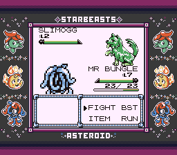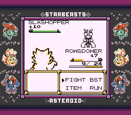 In my infinite wisdom, I didn't decide it was worth healing before I tried to battle this bug, so now I'm stuck with a very weak party up against a Level 10(!!!) bug with a Scratch that took care of both of my remaining creatures in one strike each. After blacking out I returned for a rematch, only for Rowsdower to once again be felled in one turn by a super effective Double Kick, and Mr. Bungle only barely fared any better. Clearly we are dealing with no ordinary Slashopper. This is a true force of nature. Even the mighty power of Stanko, the level 3 Slimogg was nothing in the face of its Scratching prowess. We were gonna need to grind more.