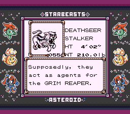 In other TM news, with that spectacular performance by Toby Kebel I decided I really did want to give Thunder Wave to one of my Wrap users, since that combination is just so deadly. I was planning on teaching it to Mr Bungle here, but on inspection, while it couldn't learn it as a Manhandla, The Peeker as a Deathseer actually can learn Thunder Wave. I waffled a bit on who should get it, but I think Mr. Bungle is probably going to wind up with better defensive stats by the late game than The Peeker, especially since Deathseer is the final evolution going by Stardex order, so Mr. Bungle needs the safety net a bit less. Plus, there's some novelty in The Peeker having it, even if it meant getting rid of Karate Chop which is a very funny visual to imagine this dog doing. Sorry Bungle, I know I just denied two good TMs from you, but I promise there's a good reason for both.