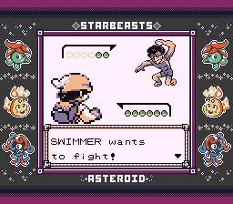 This Swimmer had an Infestin, who I'm pretty sure actually isn't a water type since Thundershock wasn't super effective. It's definitely Bug, since Rock Throw was super effective, so I'm not sure. When I fight some more of them I might try and check.